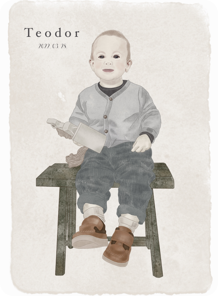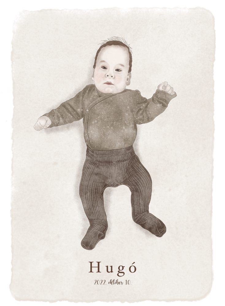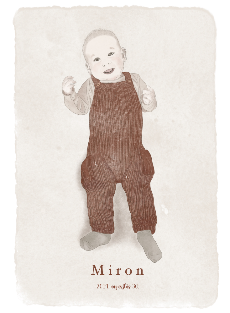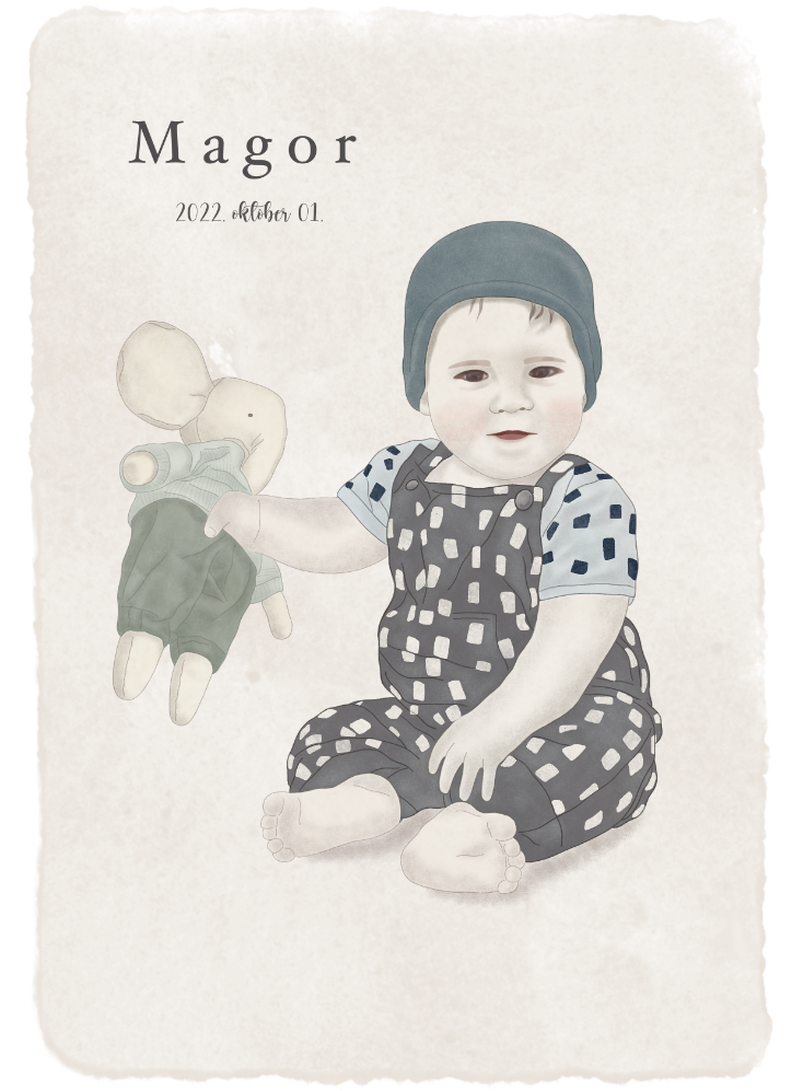 Minden csöppség általam megalkotott portréjában feltétlen boldogságom lelem. Örömmel örökítem meg kisbabád vagy pár éves gyermeked bájosan illusztrált képmását, hogy közösen egy maradandó emléket állítsunk a szempillantás alatt elillanó, de annál inkább meghatározó gyermekkornak. Amit biztosíthatok, hogy különös figyelmet szentelek arra, hogy a legtisztábban tükrözzem vissza az adott kis lélek megismételhetetlen érvényű virágzását.